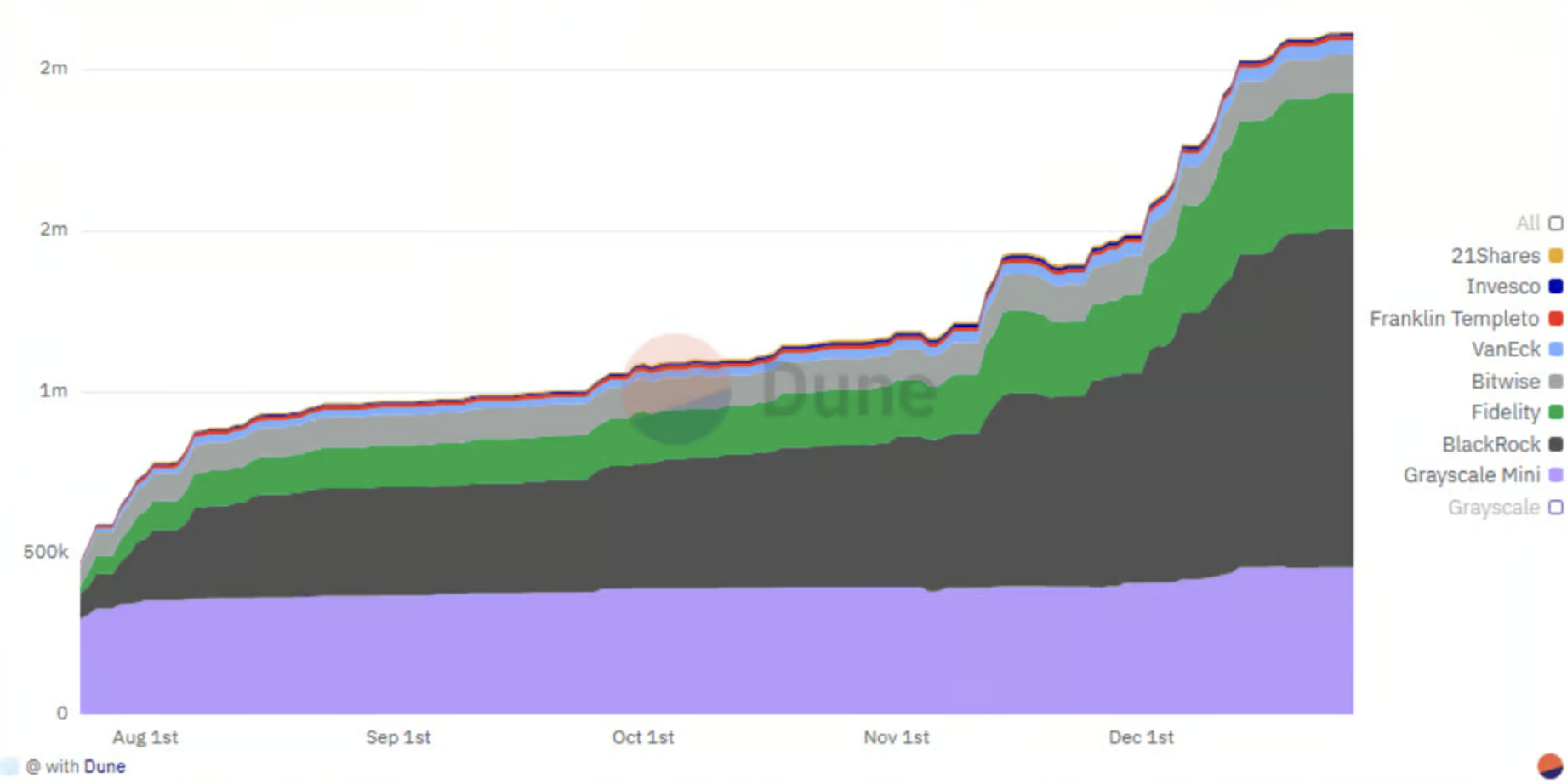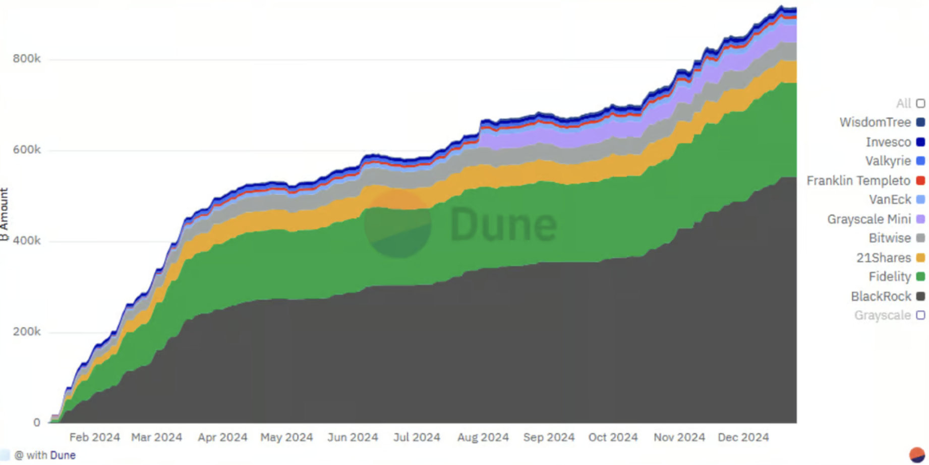 Tenencias de Bitcoin ETF excluyendo Grayscale